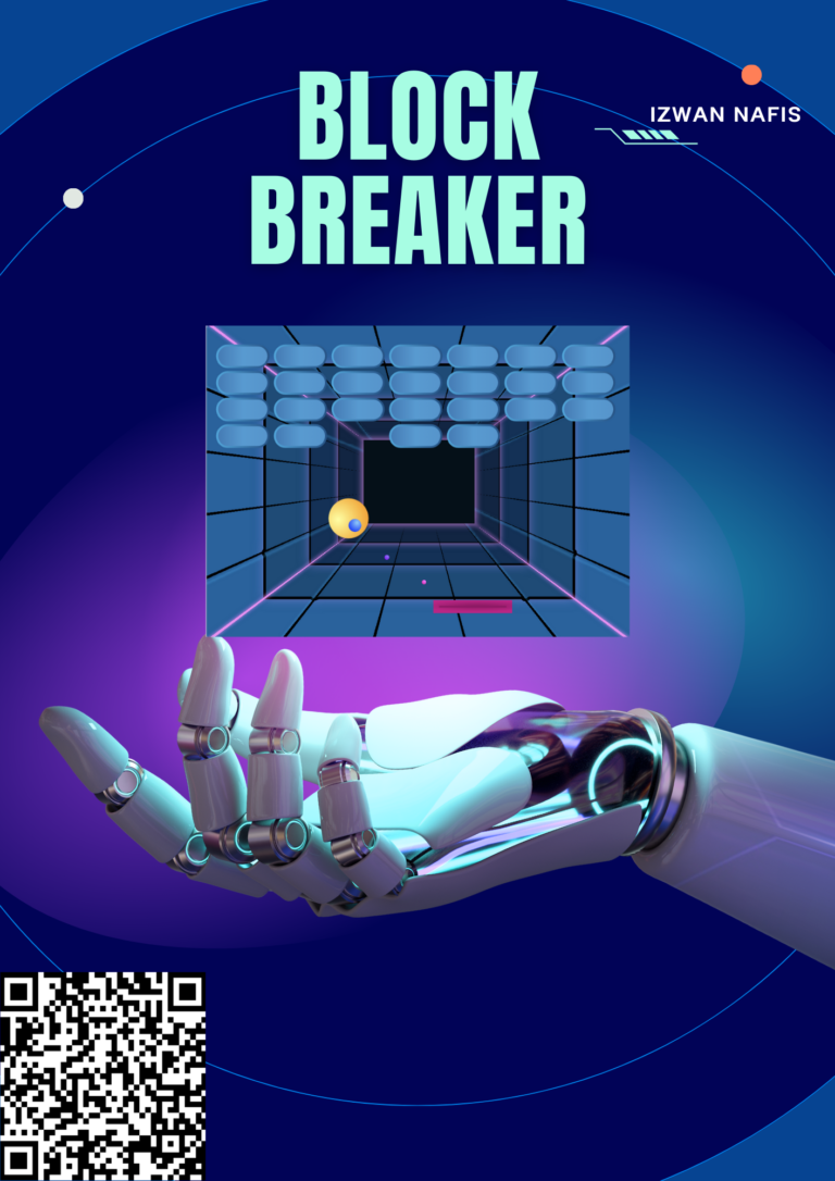 Hello! My name is Izwan Nafis, and this is my IT Project that is blok breaker So to play it, you need to use the arrow keys to move the the platform and break the blok. If you want to play it, you can scan the QR on the poster or play it on the bottom of this page. You can watch the demo below! Enjoy!