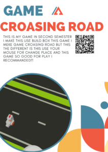 Hello! My name is Izwan Nafis, and this is my IT Project that is DEMO croasing road! So to play it, you need to use the space keys to move the ball and need so fast. If you want to play it, you can scan the QR on the poster or play it on the bottom of this page. You can watch the demo below! Enjoy!